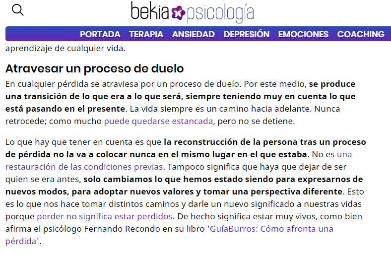 Bekia.es es un portal web de información muy completo, pues trata diversos temas como: moda, belleza, decoración, mascotas, hogar, sexo, horóscopo, etc. El sábado 1 de febrero, publicaron un artículo sobre el nacimiento de la mamá reciente, donde reseñaron el libro «GuíaBurros: Cómo afrontar una pérdida». Se trata de una guía que, de modo ameno y sencillo, te explica desde el proceso de pérdida, muerte, separación, enfermedad, envejecimiento, quiebra… hasta la toma de decisiones.